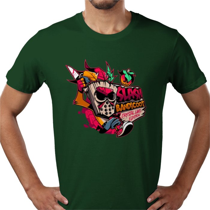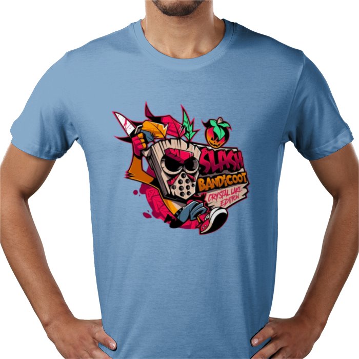Looking for a unique and fun t-shirt? Our Crash Bandicoot Friday 13th Parody T-shirt features your favourite bandicoot sporting a Jason Vorhees mask, chilling at Camp Crystal Lake. Perfect for fans of both franchises, this shirt will surely catch attention and spark conversations. Unleash your inner nostalgia!